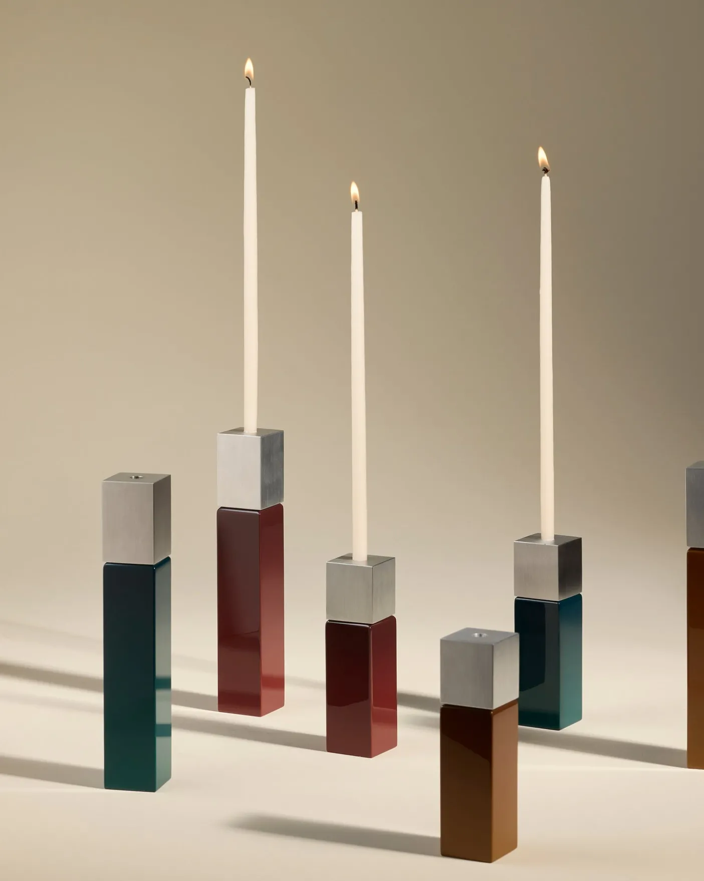 Tel un trophée à célébrer, le bougeoir Oscar, idéal pour les bougies fines, affiche fièrement sa mine sculpturale et sa teinte brillante.