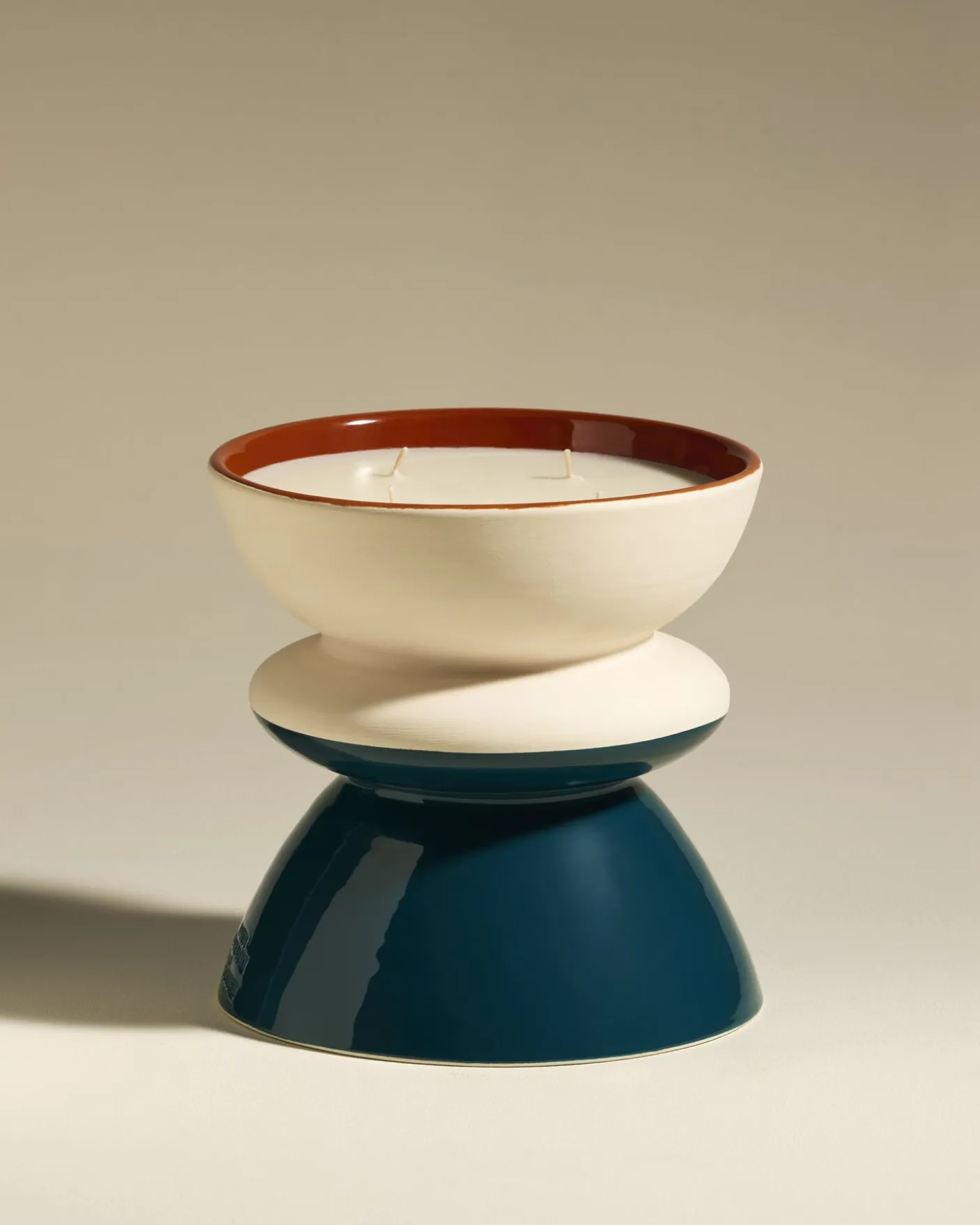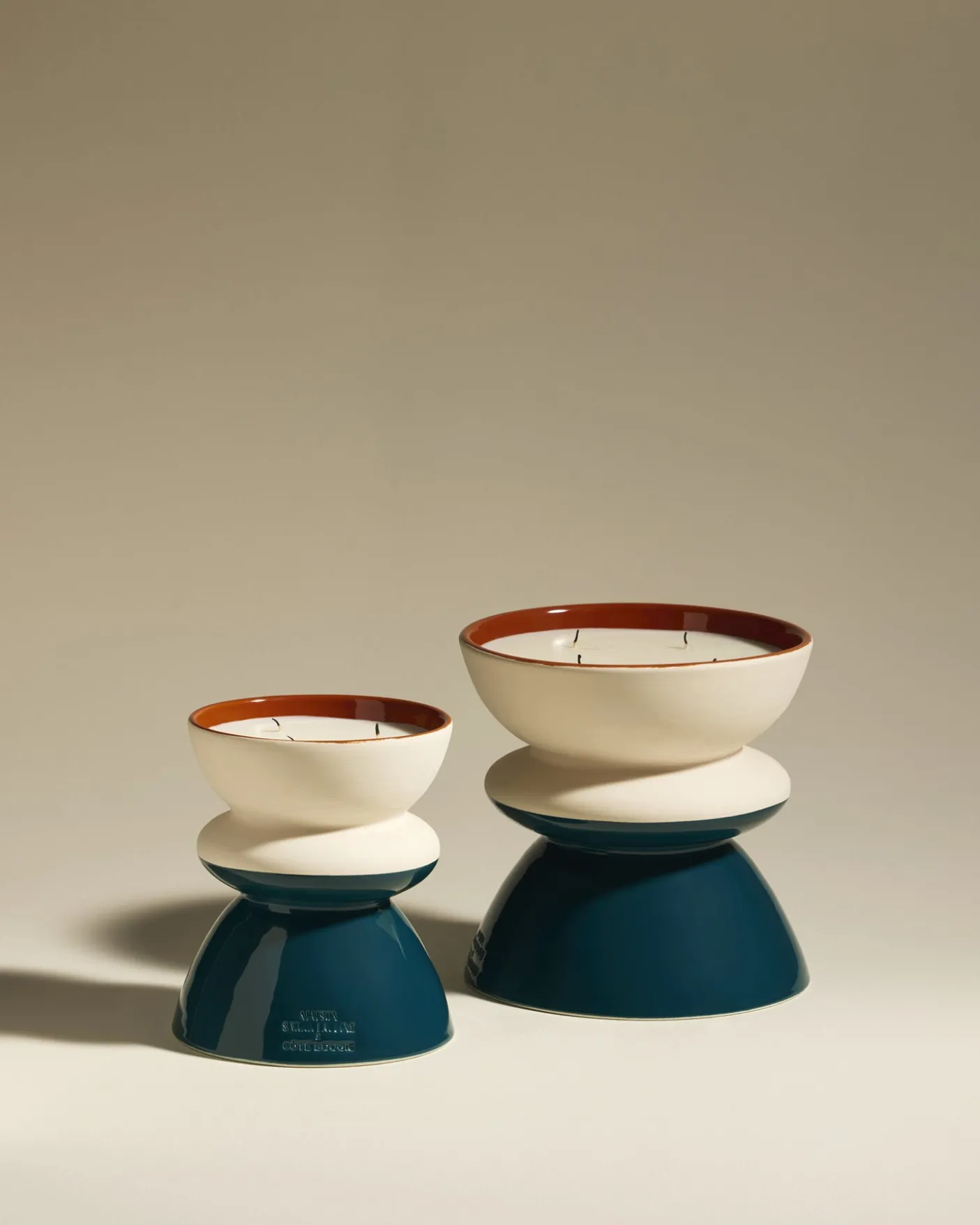 Esprit Totem. Nées de la collaboration entre Maison Sarah Lavoine et Côté Bougie Marrakech, les bougies Tamtam célèbrent les racines de cœur de l’éditrice, entre tradition marocaine et couleurs parisiennes.