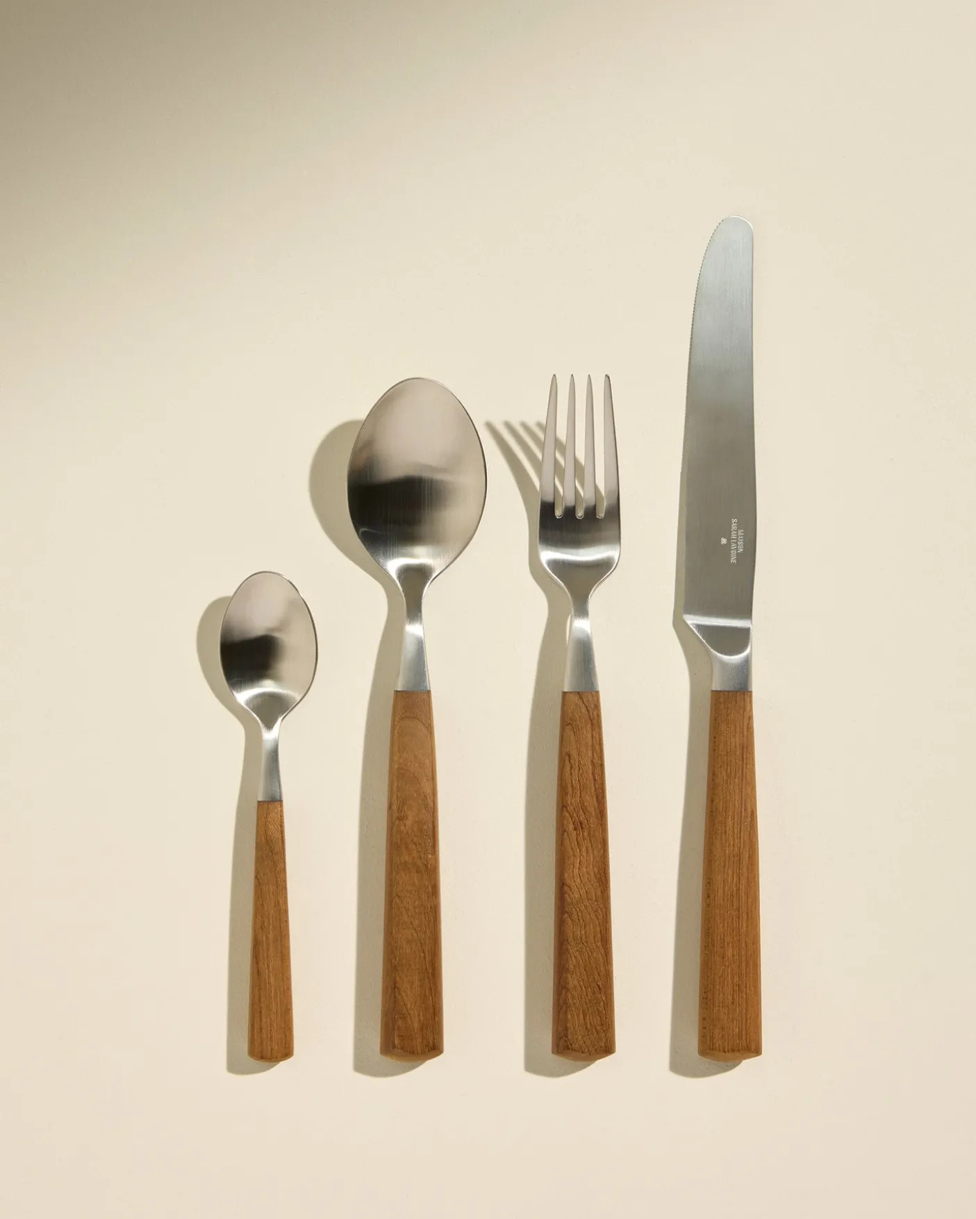 Avec leur finition argentée et leur manche en bois d’érable naturel, chaque pièce offre une prise en main agréable et une esthétique douce, chaleureuse, qui s’intègre naturellement à tous les styles de table.