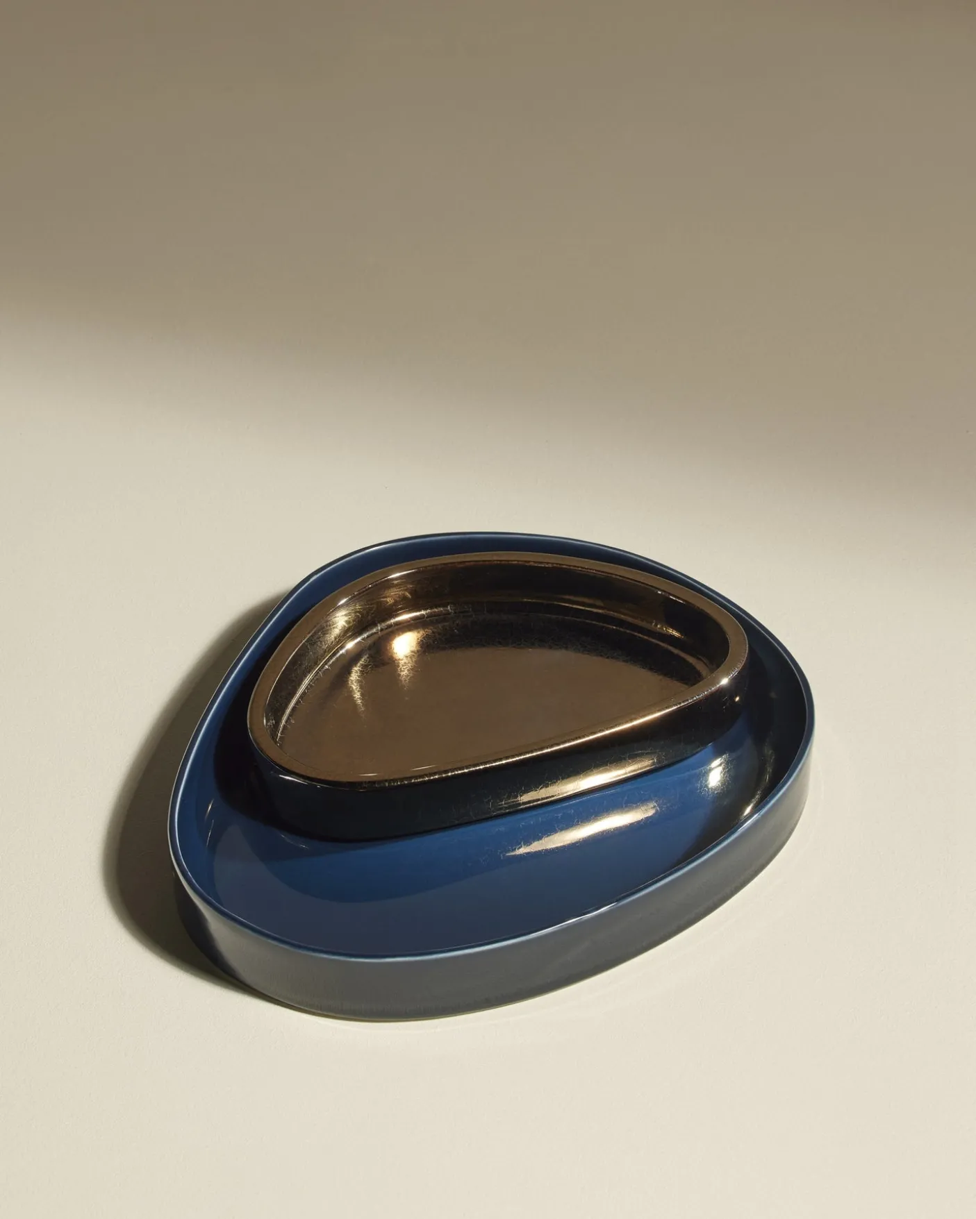 Deux en un. Pièce singulière de Maison Sarah Lavoine, le vide-poche Mars est pensé en céramique, une matière délicate et fonctionnelle. Son émail brillant lui confère des nuances chatoyantes, changeantes au fil de la journée, selon la lumière.