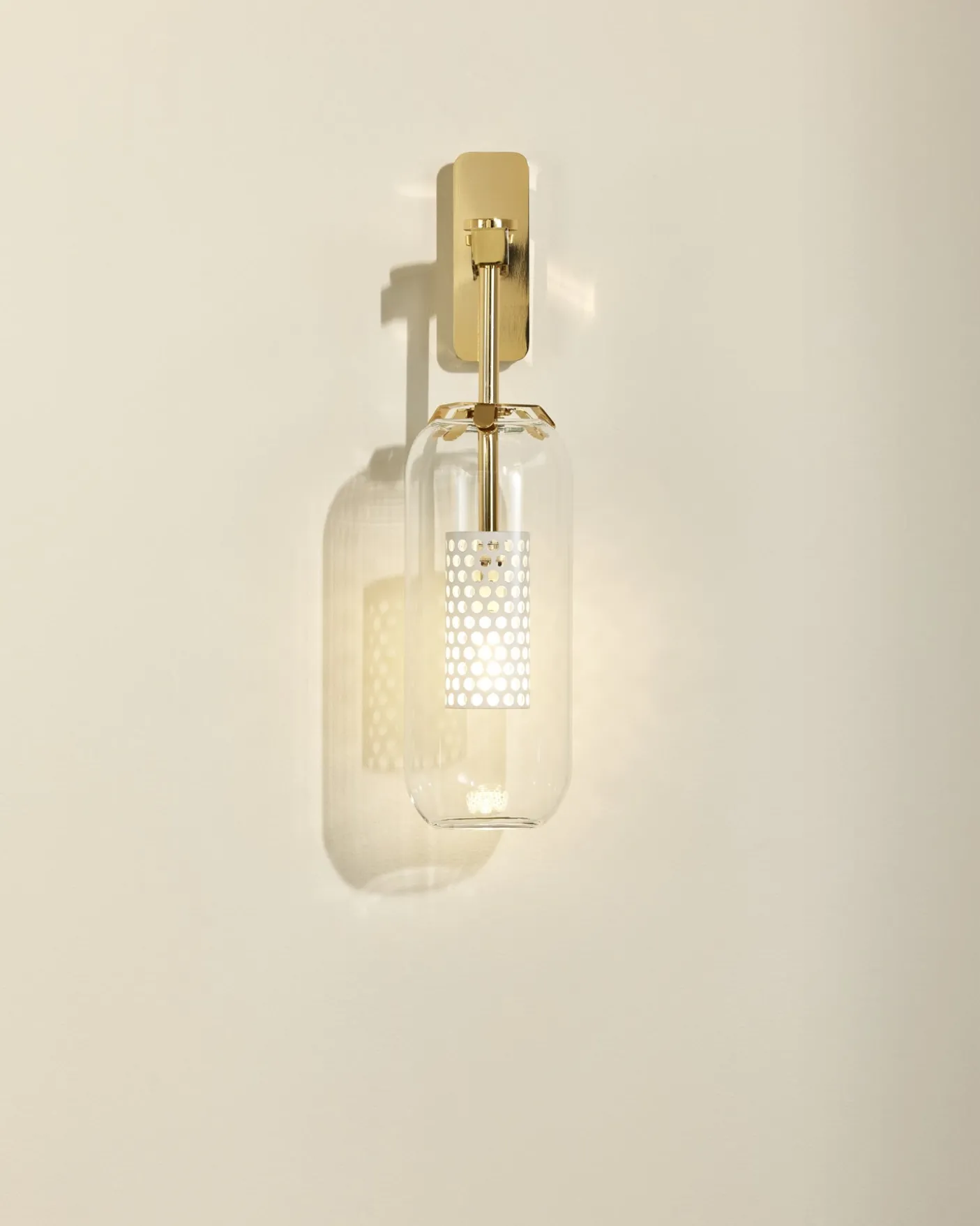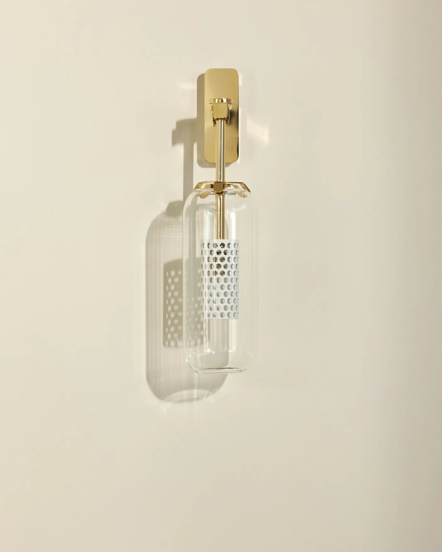 Idée lumineuse. Dessinée en 2015 par le Studio d’architecture pour le restaurant Victoria (Paris 16e), l’applique Vadim est depuis devenue un incontournable de Maison Sarah Lavoine. Inspirée des années 30, elle encapsule une cage en métal laquée blanche dans un bulbe de verre aux contours organiques. Aérienne, elle se structure par une tige en acier galvanisé doré fixée à deux branches perpendiculaires.