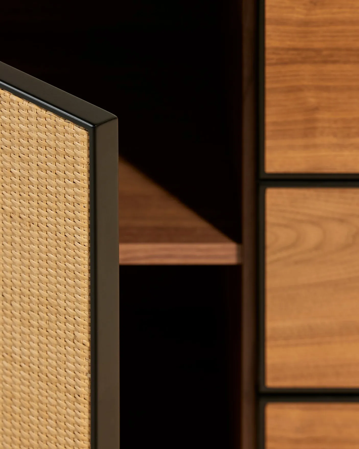 La commode est composée de moelle de rotin, tressée de manière artisanale en atelier.