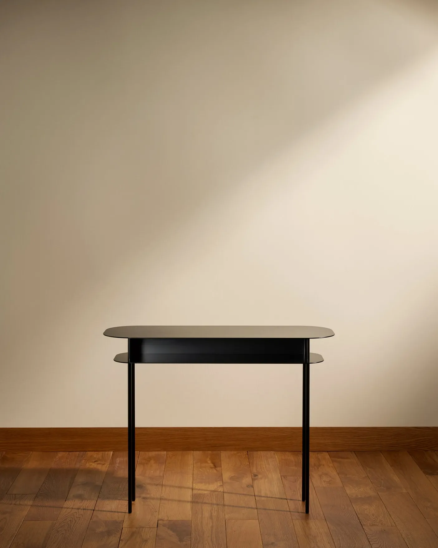 À l’instar de l’ensemble des créations de la collection de mobiliers Tokyo, cette console est disponible en acier thermolaqué noir.