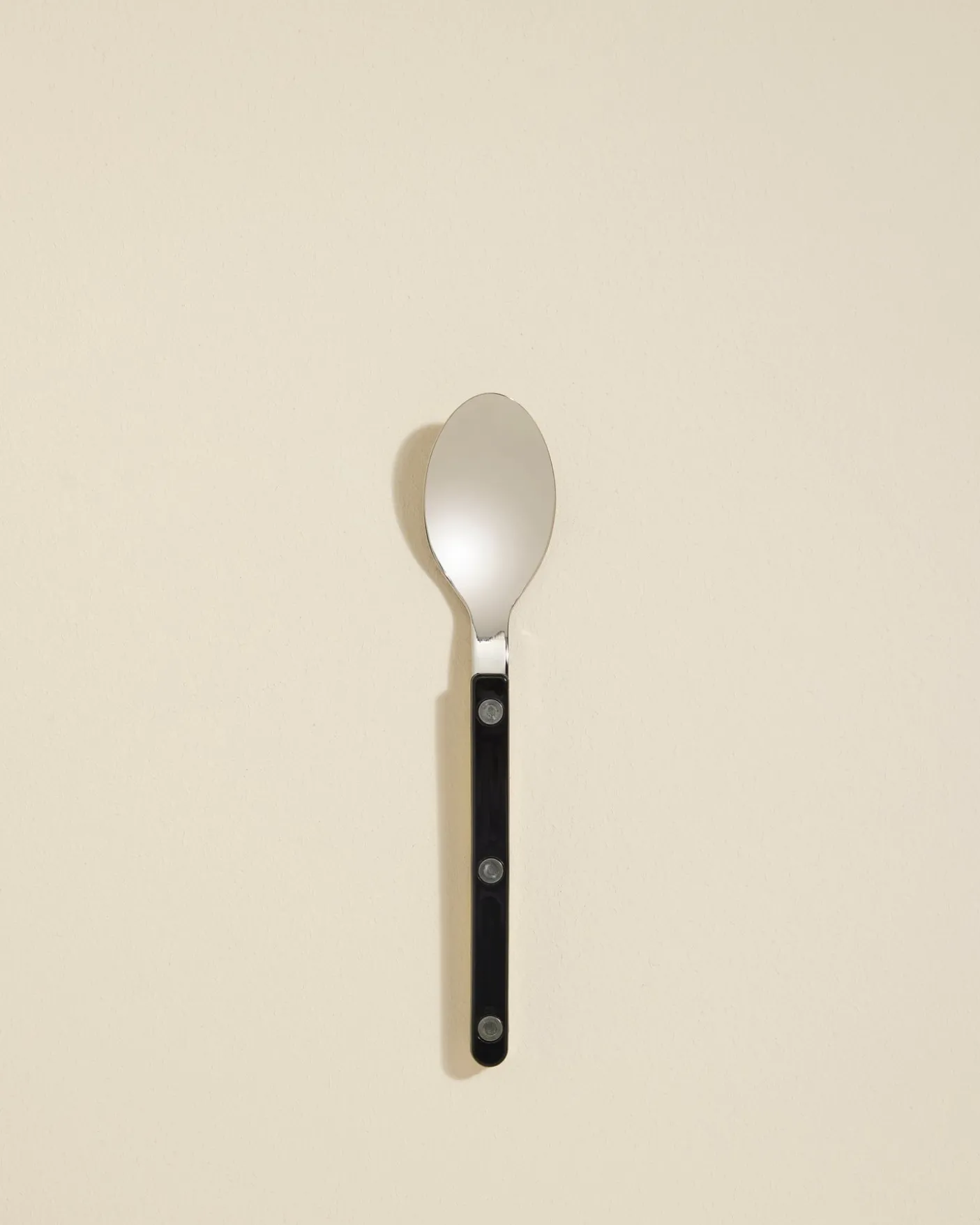 La cuillère à café Brillante permet de composer un service complet une fois accompagnée de la fourchette, du couteau et de la cuillère à soupe. Mêlant les nuances chères à l’éditrice Sarah Poniatowski, elle réveille un petit-déjeuner, bouscule un déjeuner et s’accommode de tous les types de dîners.