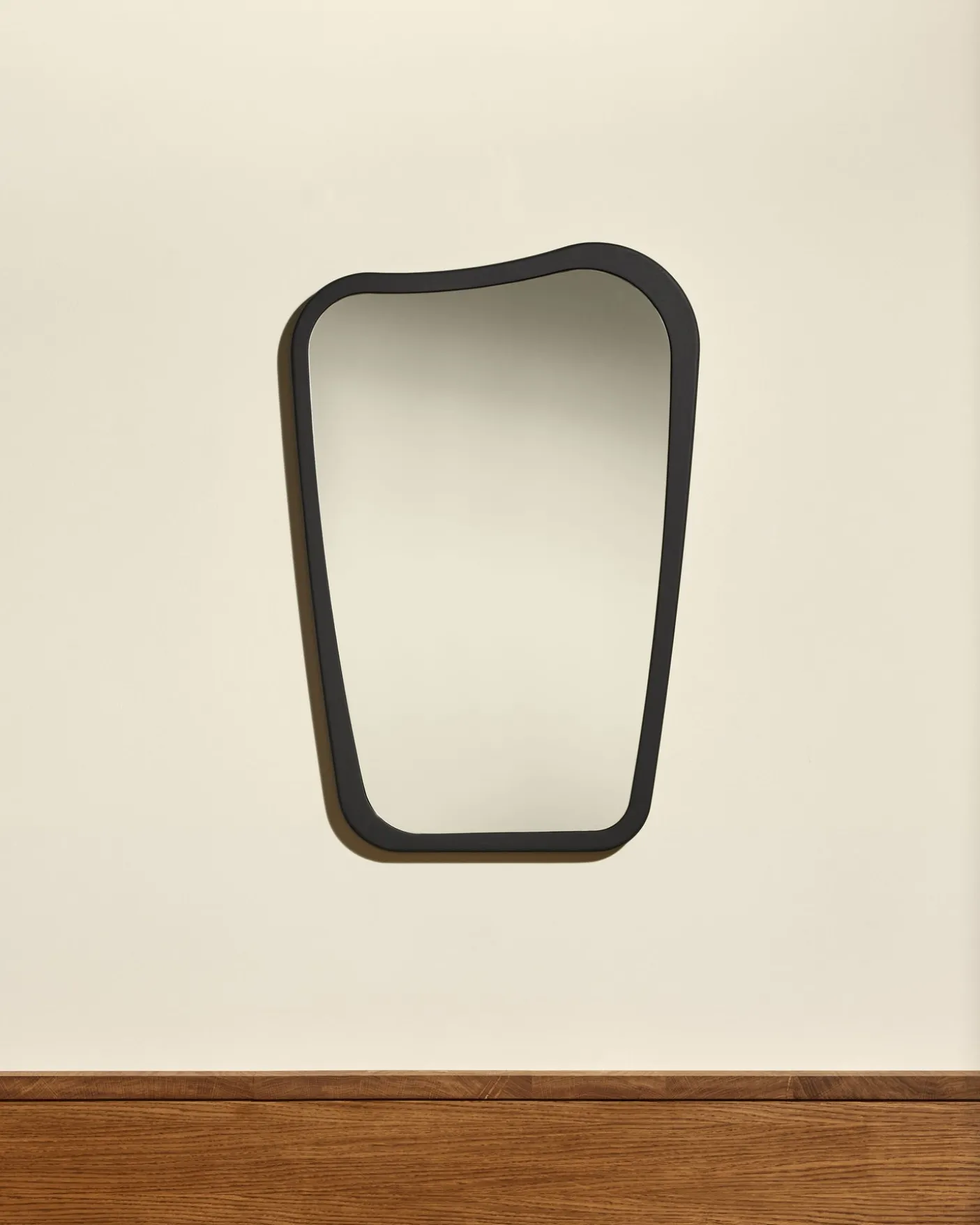 Face à face. Le miroir Organique a un pouvoir : celui d’attraper le regard. L’œil se pose sur sa ligne qui ondule. Derrière ces courbes, on devine un discret hommage à l’esthétique des années 50, l’une des inspirations de l’éditrice Sarah Poniatowski.