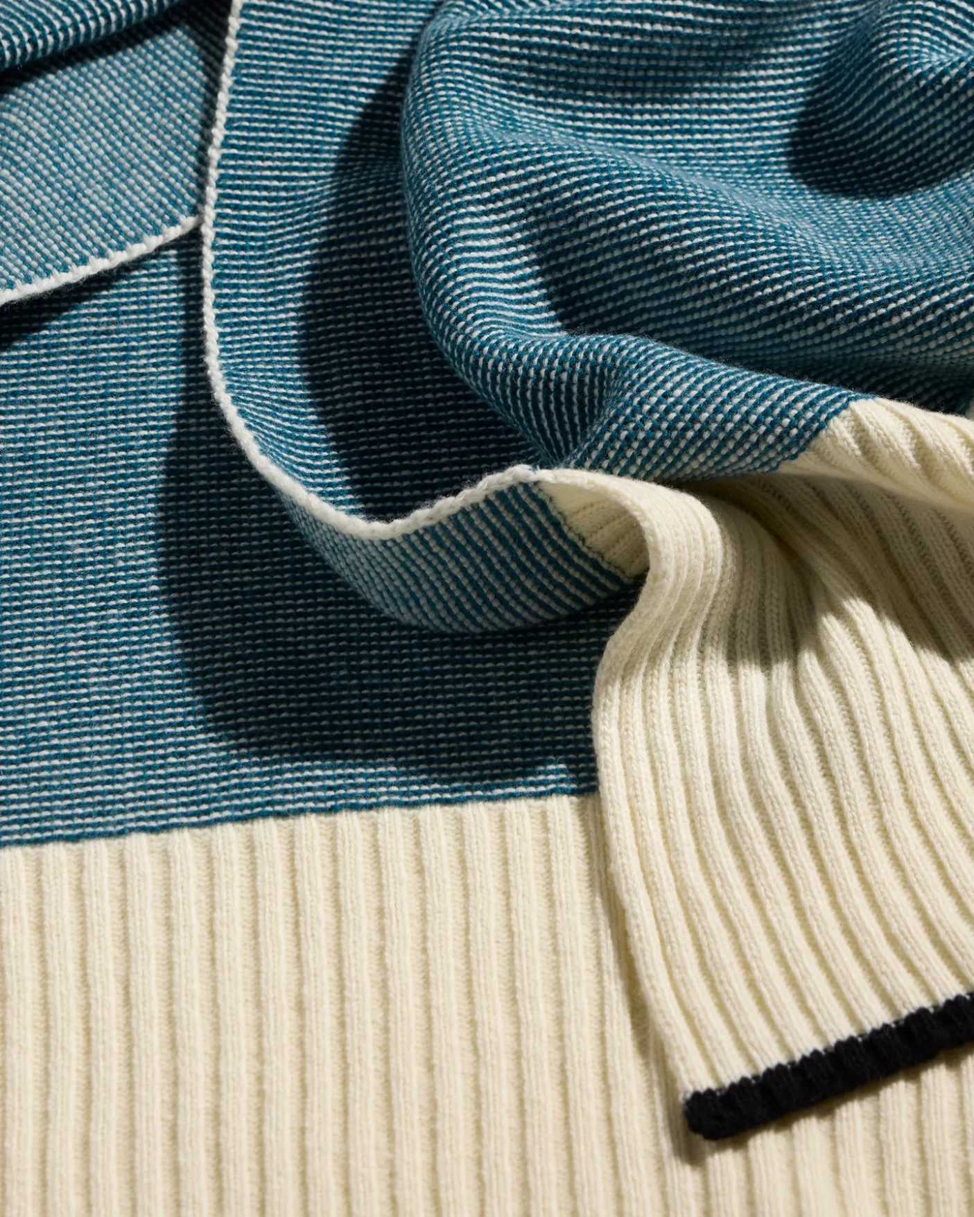 En 100% laine, le plaid est en point mousse à effet moucheté.