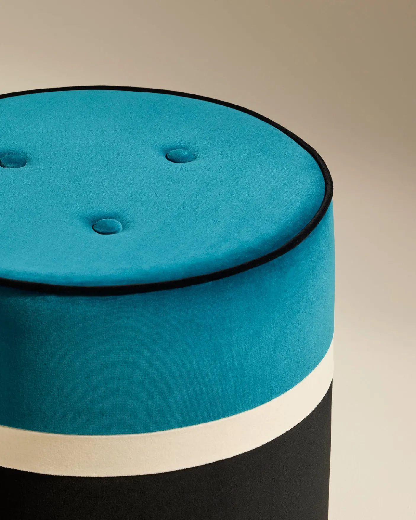 Le velours du pouf Léo ? Traité pour être anti-tâches et bordé par un passepoil contrasté.