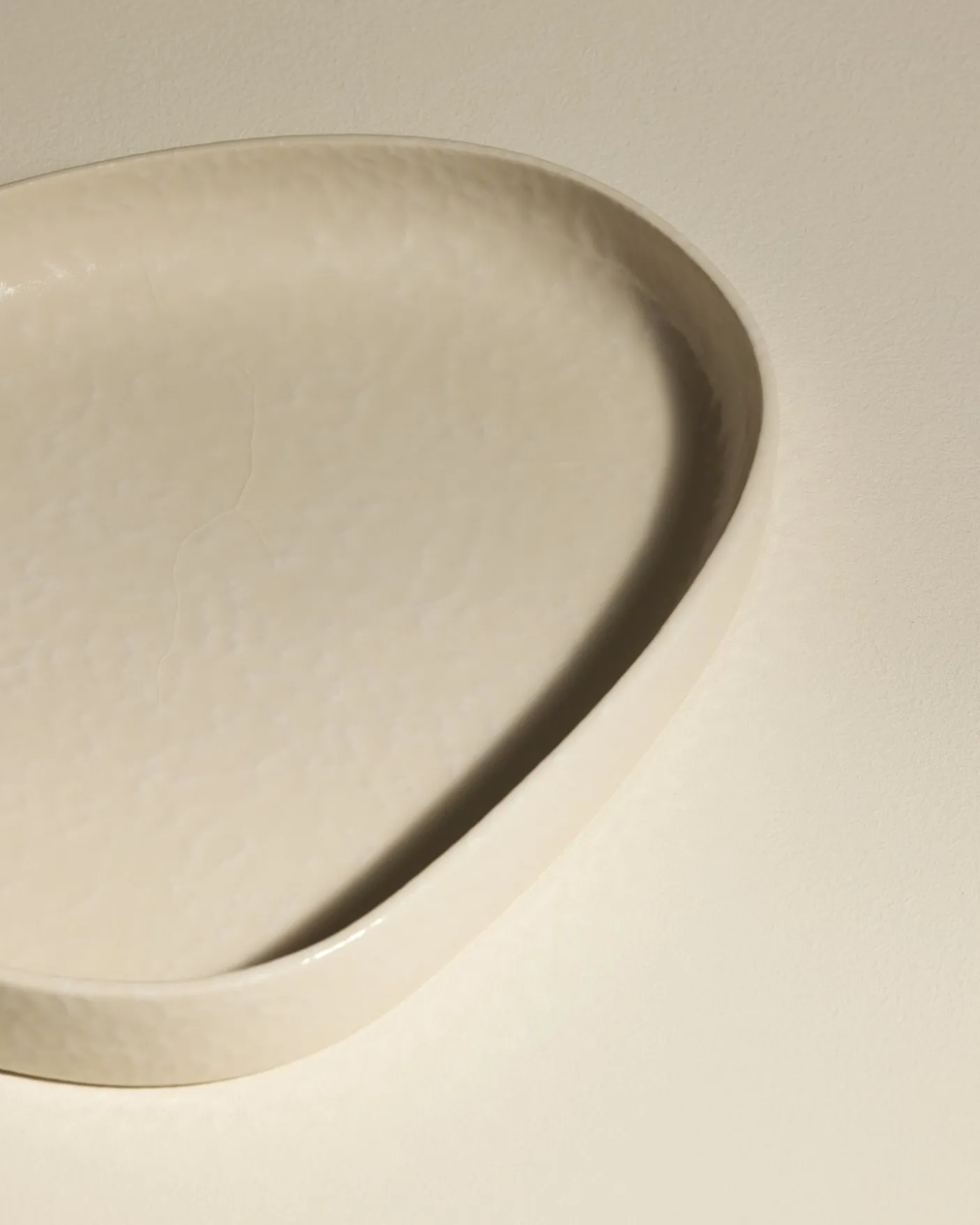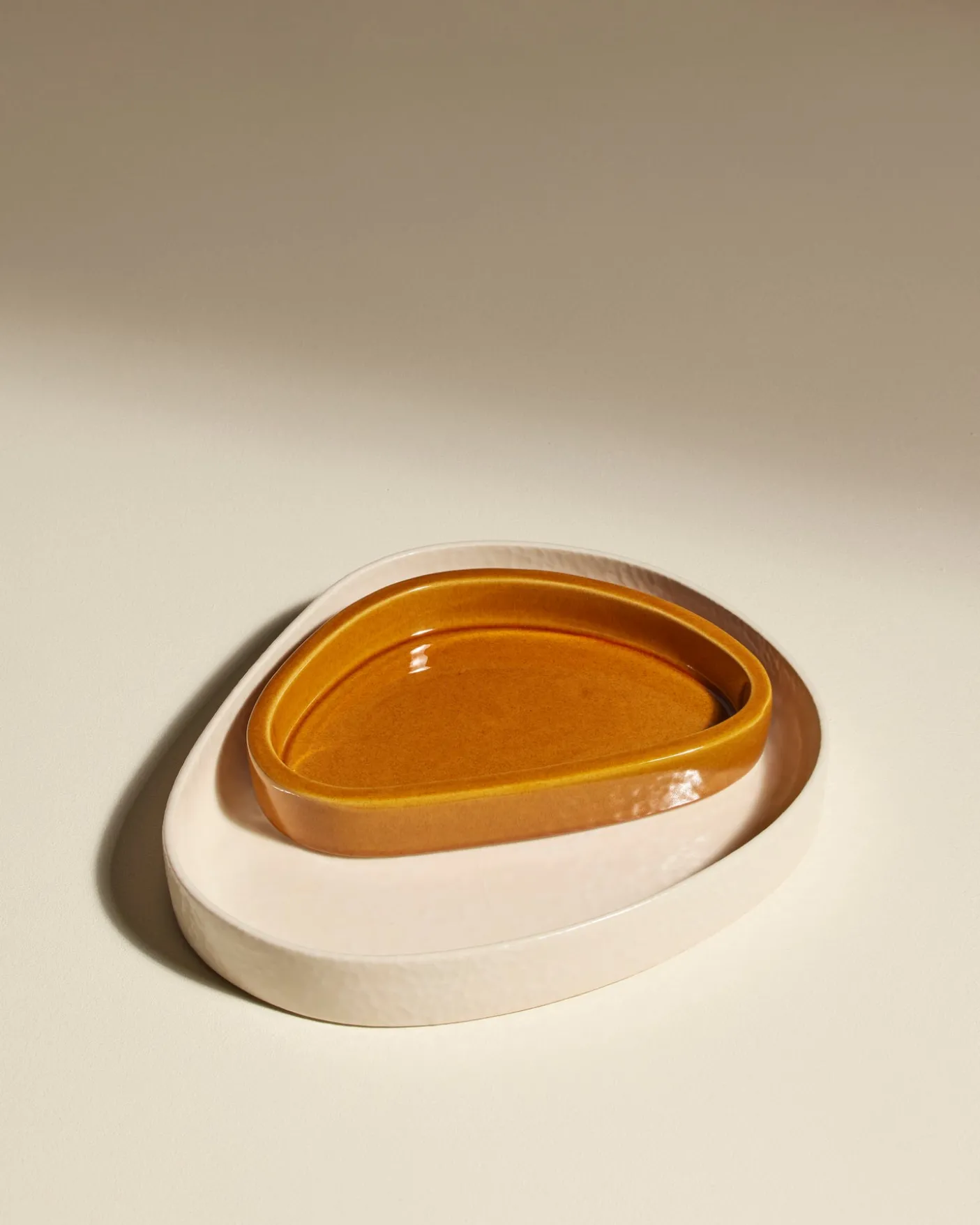 Deux en un. Pièce singulière de Maison Sarah Lavoine, le vide-poche Mars est pensé en céramique, une matière délicate et fonctionnelle. Son émail réactif mat lui confère des nuances chatoyantes, changeantes au fil de la journée, selon la lumière.
